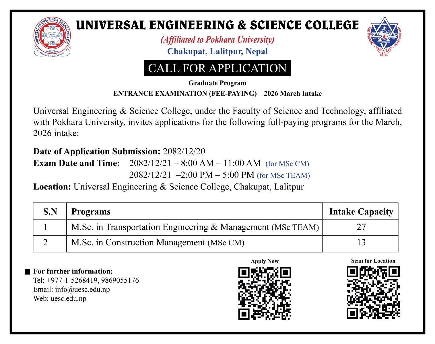 Register online: www.uesc.edu.np/master_admission